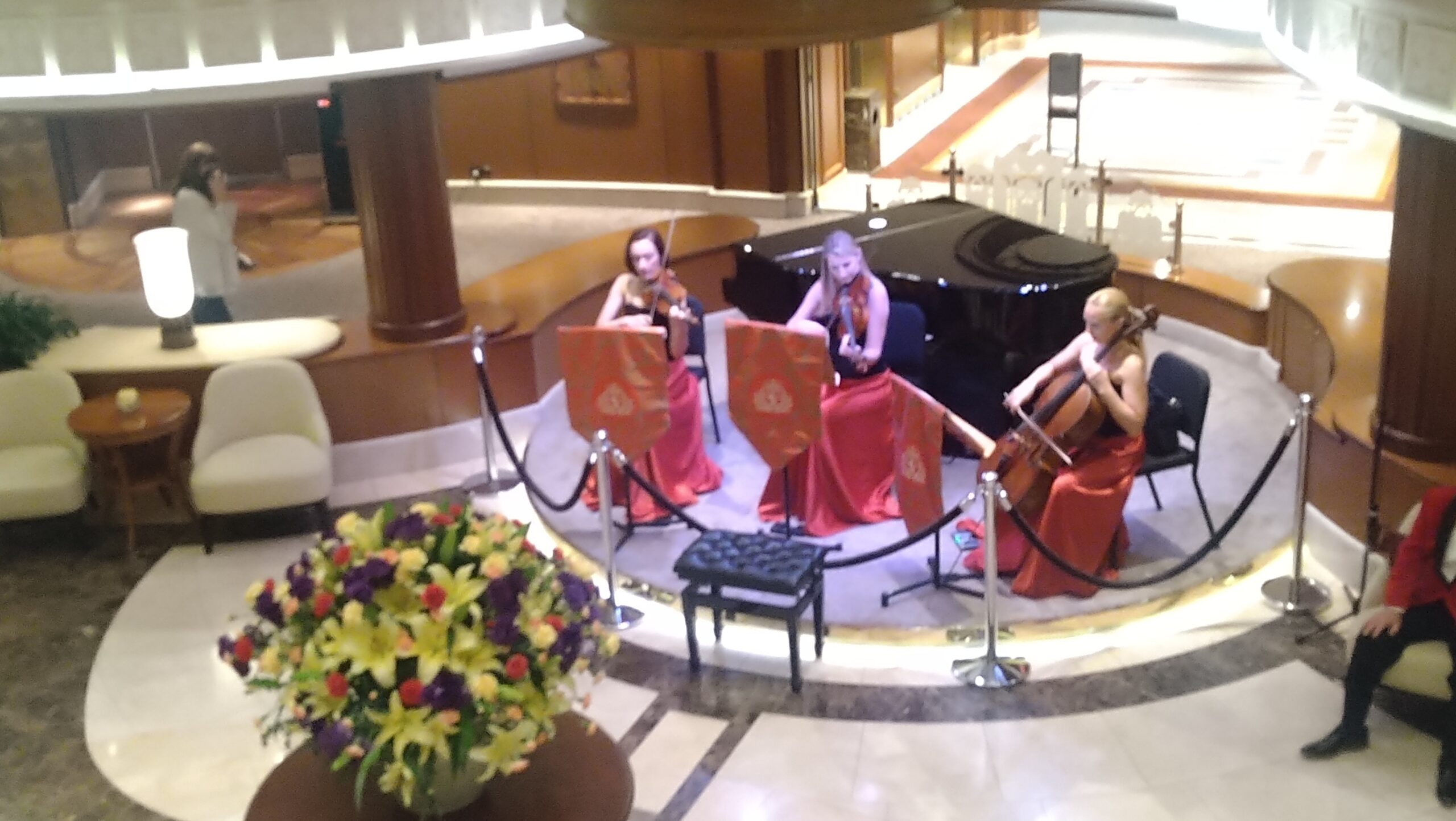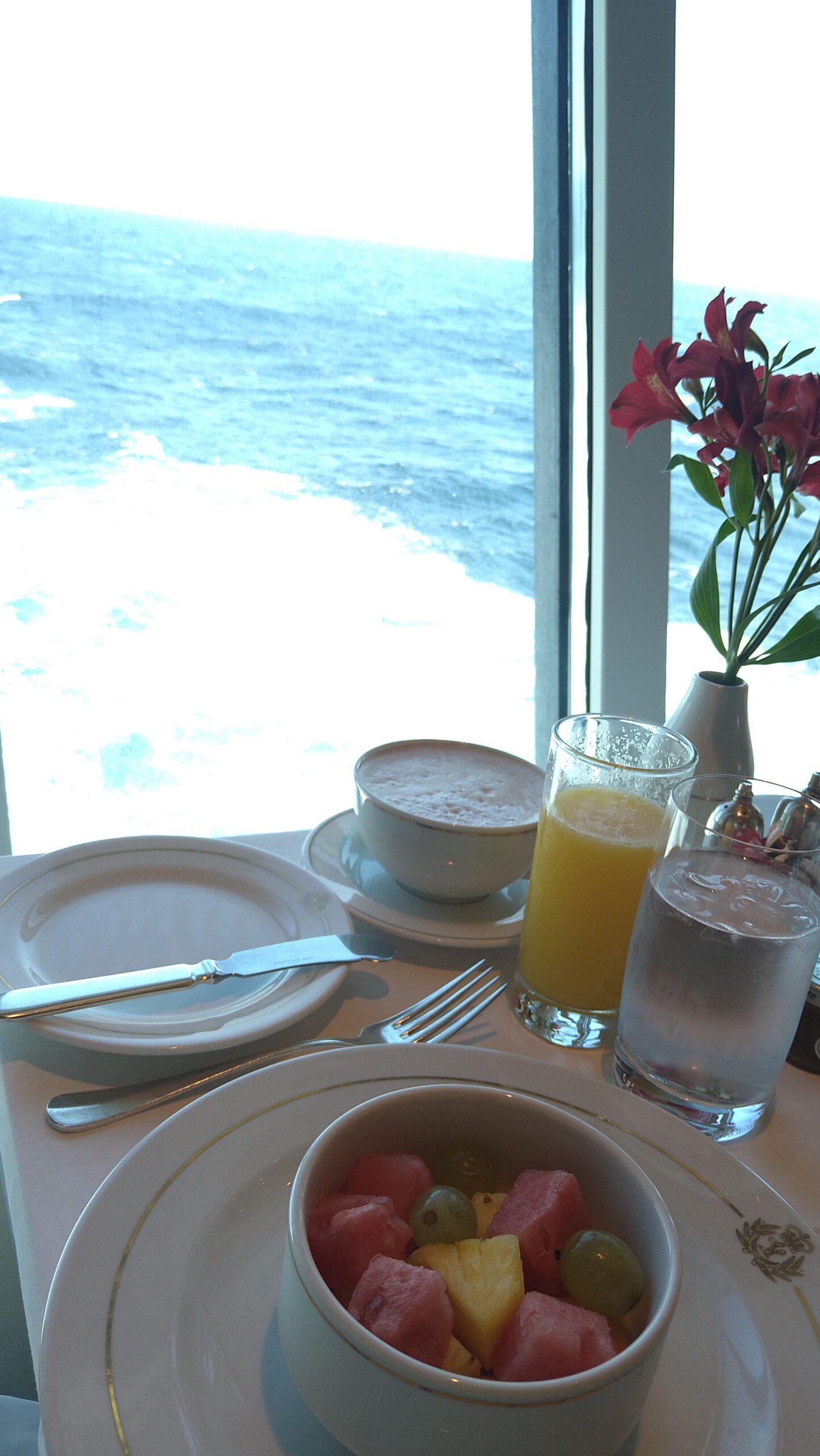 非日常的な日常を楽しむことがクルーズではあるが、この船の上で起こっていることは、まあ、少なくとも私の日常では決してない。私が利用したのは4つのカテゴリーの最下位にあたるブリタニアレストラン(客室はバルコニー)だったが、これで一番下なら最上位のクイーンズグリルはいかほどかと思う。『タイタニック』でローズがいた環境に似ているのだろうか。(キュナードラインは1934年に、タイタニックを擁していたホワイトスターラインを吸収合併した)