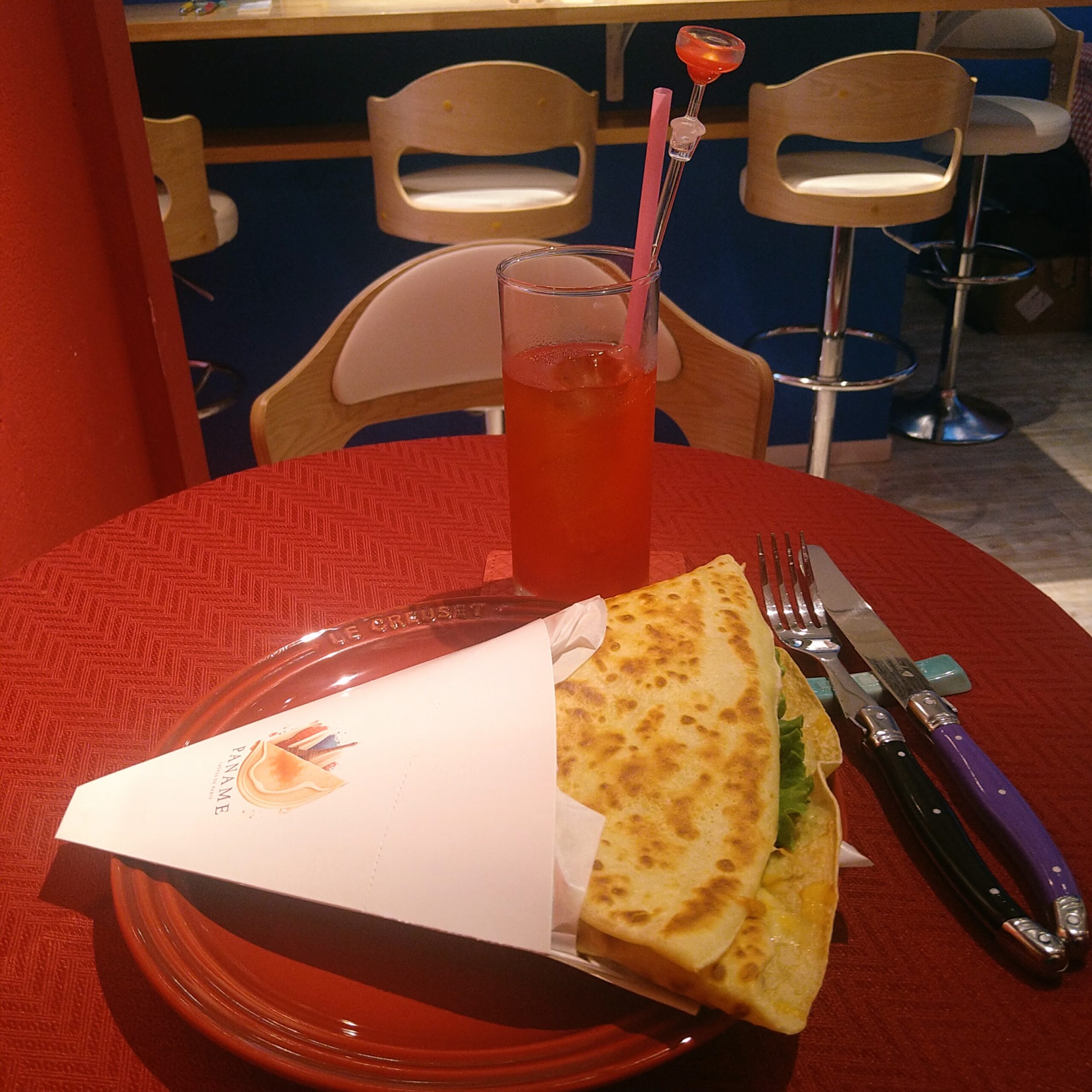 その大阪は心斎橋で、友人のKevin (Nick) Bahiがパリ風クレープレストラン&バー「PANAME CREPES DE PARIS」(所在地: 〒542-0086 大阪府中央区西心斎橋1丁目10−41 心斎橋 ANDANTINO 1F)を開いた。偶然にも、ホテル日航大阪 から徒歩数分の場所に位置している。「パリでクレープレストラン&バーで働いていたときから、自分でお店を持ちたいと思っていた。パリ風のクレープレストラン&バーは日本初。日本中に広めたいよ」とNickは力強く言う。自ら手掛けたというインテリアデザインは、トリコロールをモチーフとしておりとてもスタイリッシュだ。それにしてもクレープがおいしい。サムライソース(日本の侍とは関連無し)、チーズ、ハム、レタス、ハラペーニョなどを入れたクレープと、チョコレートのクレープを食べてみた。食事、スナック、デザートなどとして、いつでもどこでも気軽に楽しめる万能な食べ物なんだと実感。大阪の最終日、帰京しなければならないギリギリの時間までここで過ごした。クレープの他、いつでもワインなどのアルコールやソフトドリンクを楽しめる。wifiもあるので、(混みすぎていなければ)パソコン開いて仕事を片付けることもできる。こんなお店、近所にほしいものだ。あれば週3は行きますね。