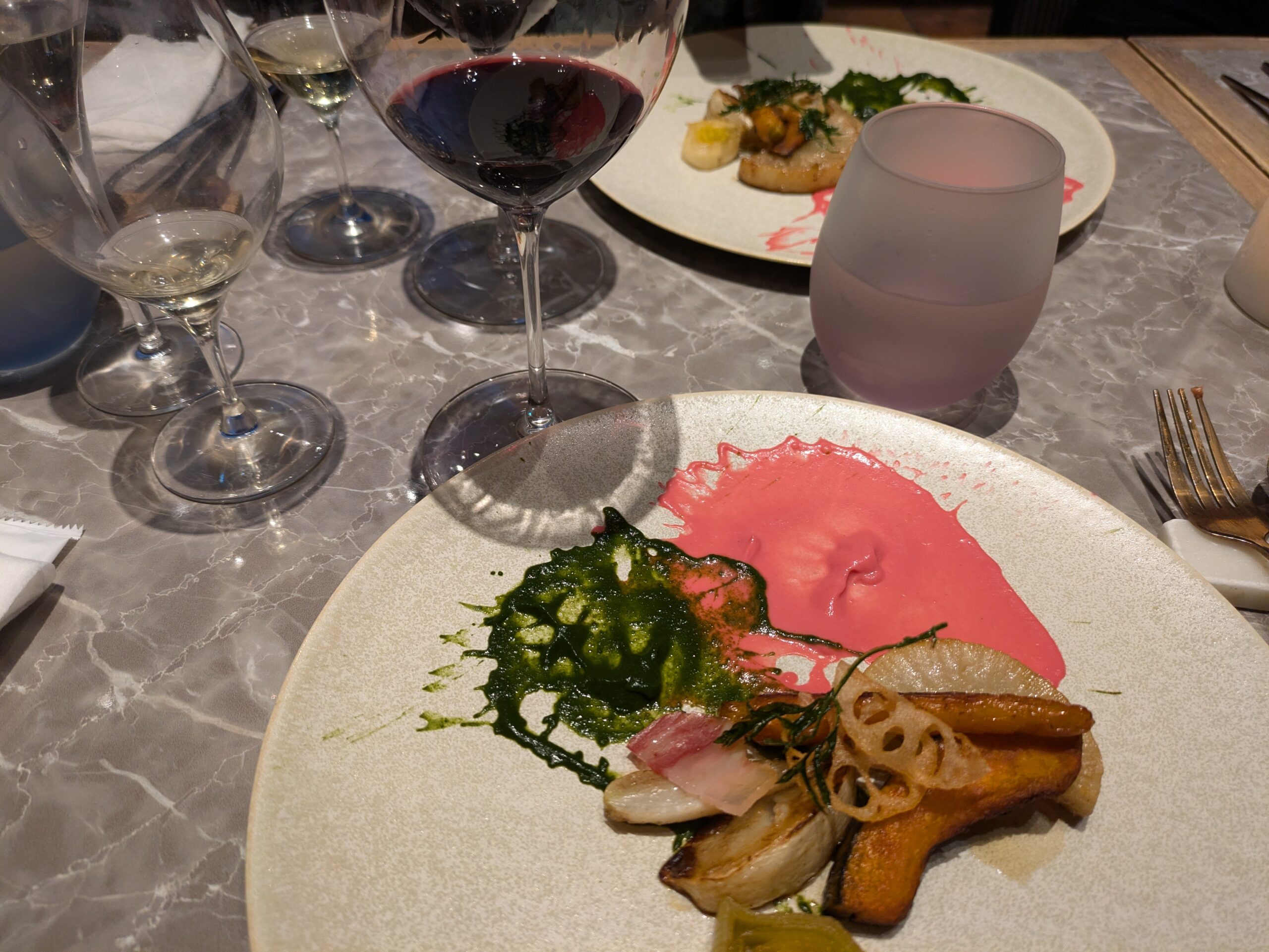 開催場所は上野の「ブラッスリー・レカン」。マンハッタンのグランド・セントラル駅構内のカフェやレストランを思わせる、天井の高いアートギャラリーのような空間です。料理の盛り付けにも、水彩画の筆使いを思わせる軽やかさと繊細さがありました。また行きたいお店です。お店の方も「百合草梨紗さんだ」とワクワクしていました。