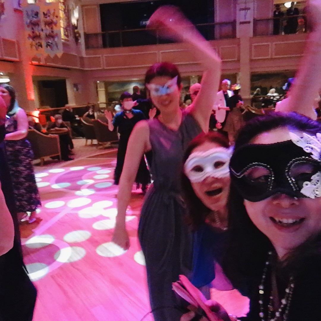 裾を引きずる長さのフォーマルドレスを着たのは20年ぶりだ。ガラナイトではボールルームダンスに挑戦。かつて1回だけタンゴレッスンを受けたことが役に立った。パートナーが上級レベルのダンサー(プロのダンスホストがいる)であれば、もう一方はついていくだけでとりあえず形になることが分かっていたから躊躇はなかった。何でも経験しておくものだと思う。
