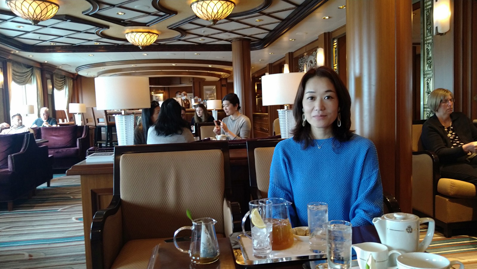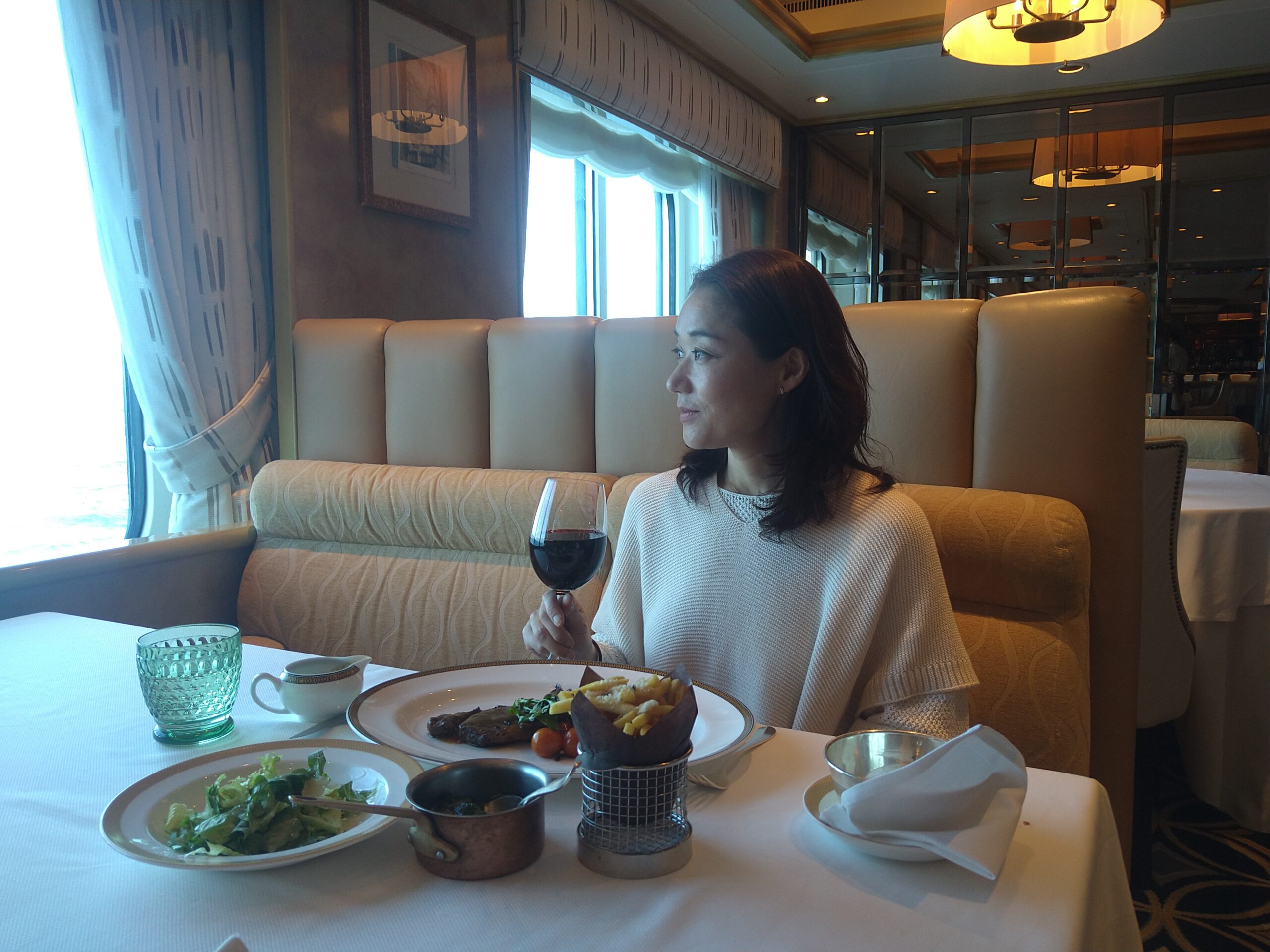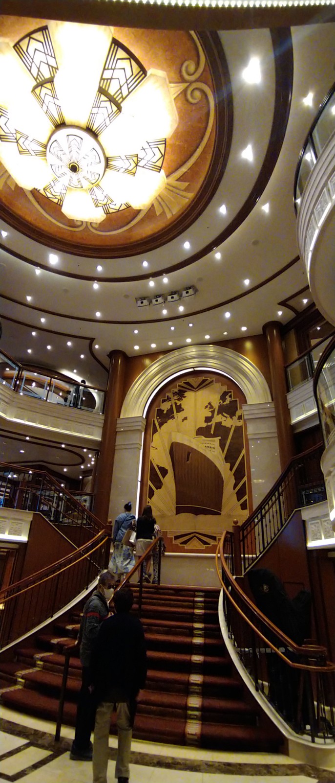 非日常的な日常を楽しむことがクルーズではあるが、この船の上で起こっていることは、まあ、少なくとも私の日常では決してない。私が利用したのは4つのカテゴリーの最下位にあたるブリタニアレストラン(客室はバルコニー)だったが、これで一番下なら最上位のクイーンズグリルはいかほどかと思う。『タイタニック』でローズがいた環境に似ているのだろうか。(キュナードラインは1934年に、タイタニックを擁していたホワイトスターラインを吸収合併した)