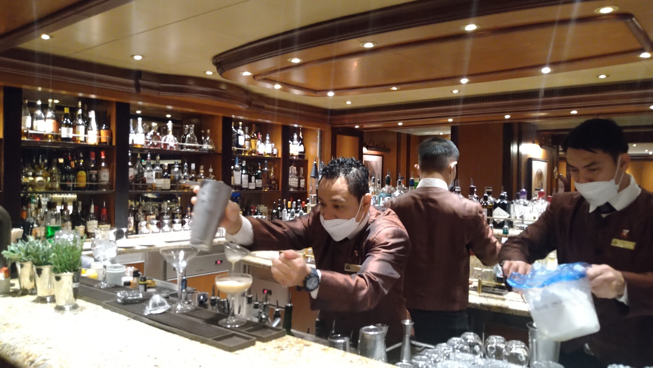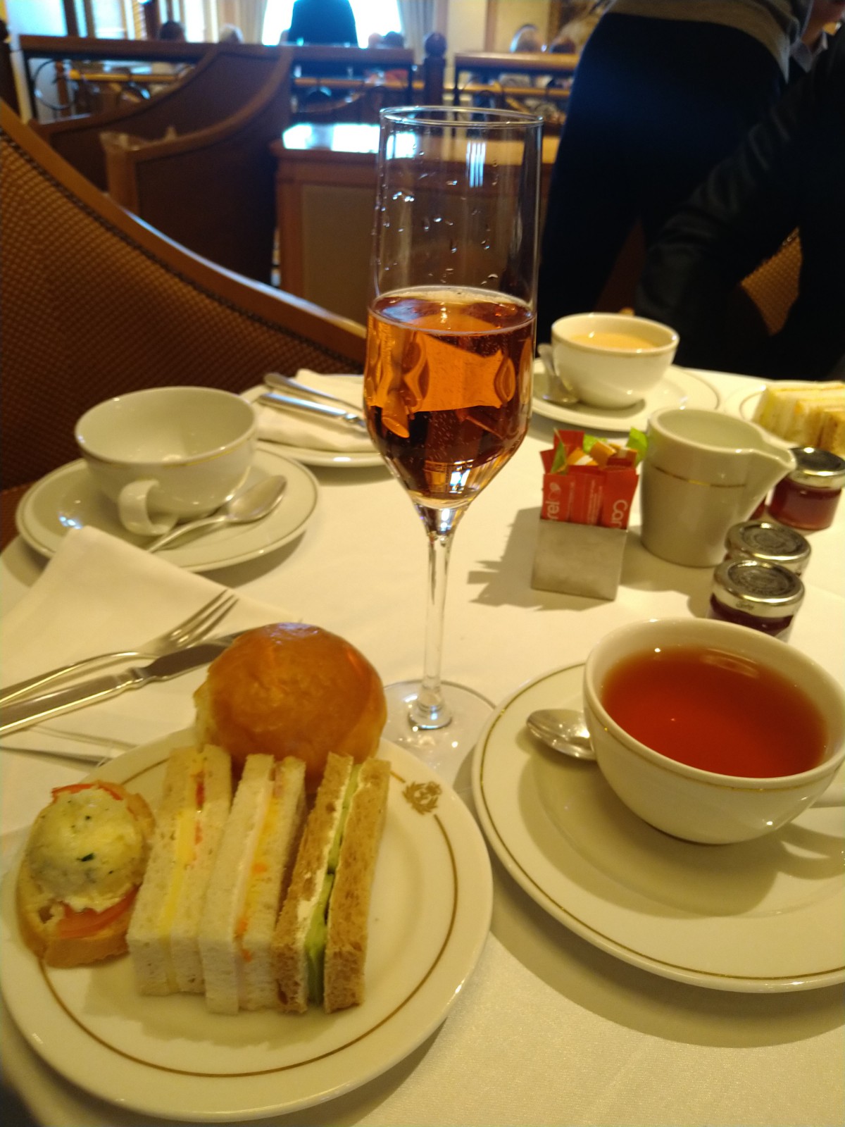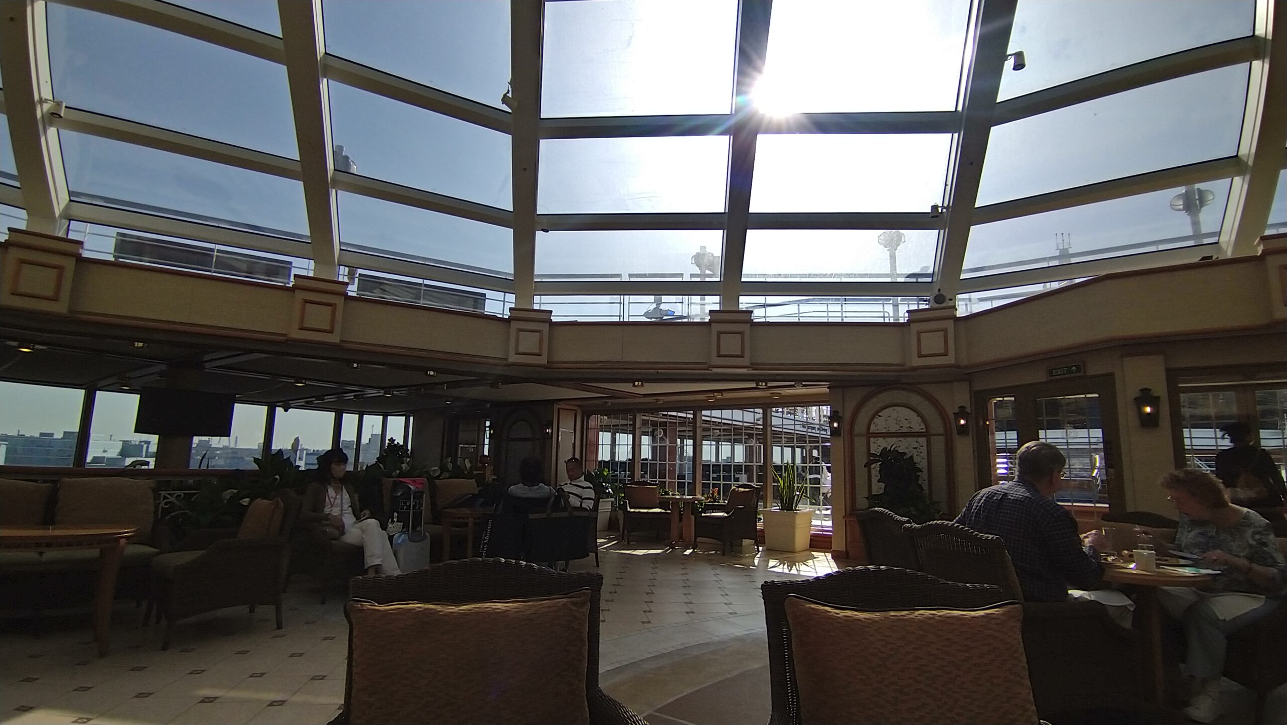 非日常的な日常を楽しむことがクルーズではあるが、この船の上で起こっていることは、まあ、少なくとも私の日常では決してない。私が利用したのは4つのカテゴリーの最下位にあたるブリタニアレストラン(客室はバルコニー)だったが、これで一番下なら最上位のクイーンズグリルはいかほどかと思う。『タイタニック』でローズがいた環境に似ているのだろうか。(キュナードラインは1934年に、タイタニックを擁していたホワイトスターラインを吸収合併した)