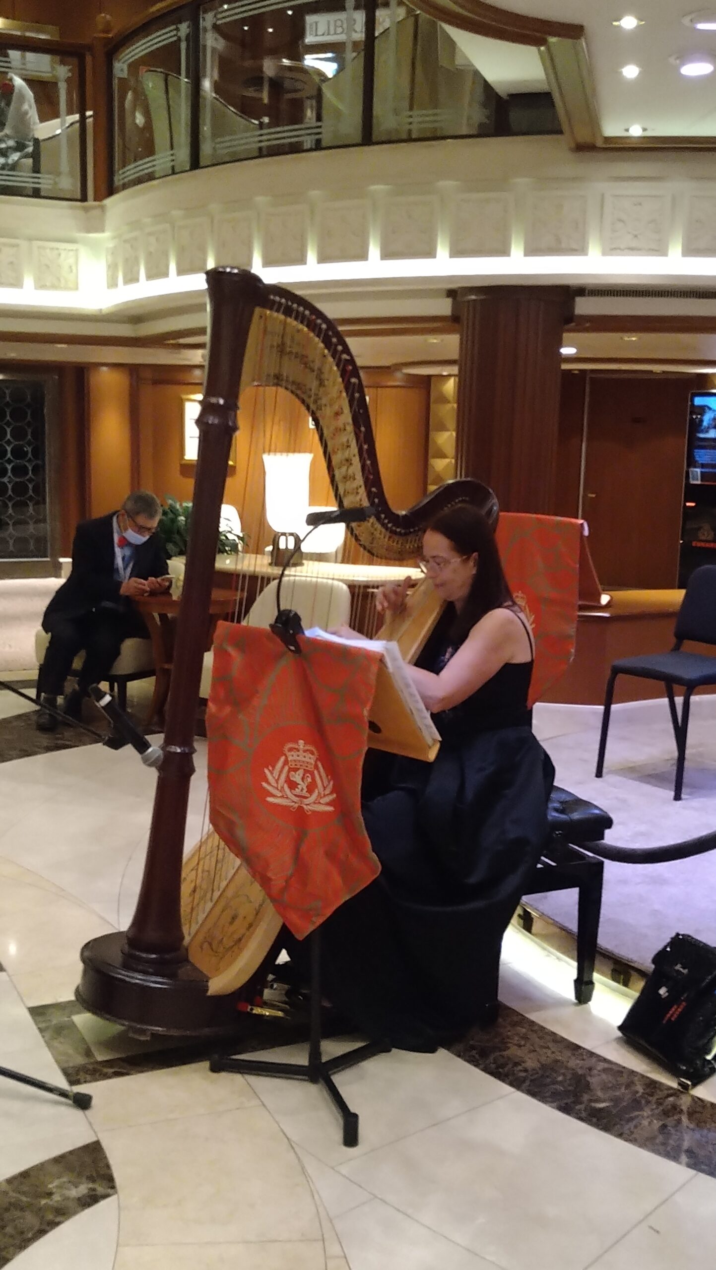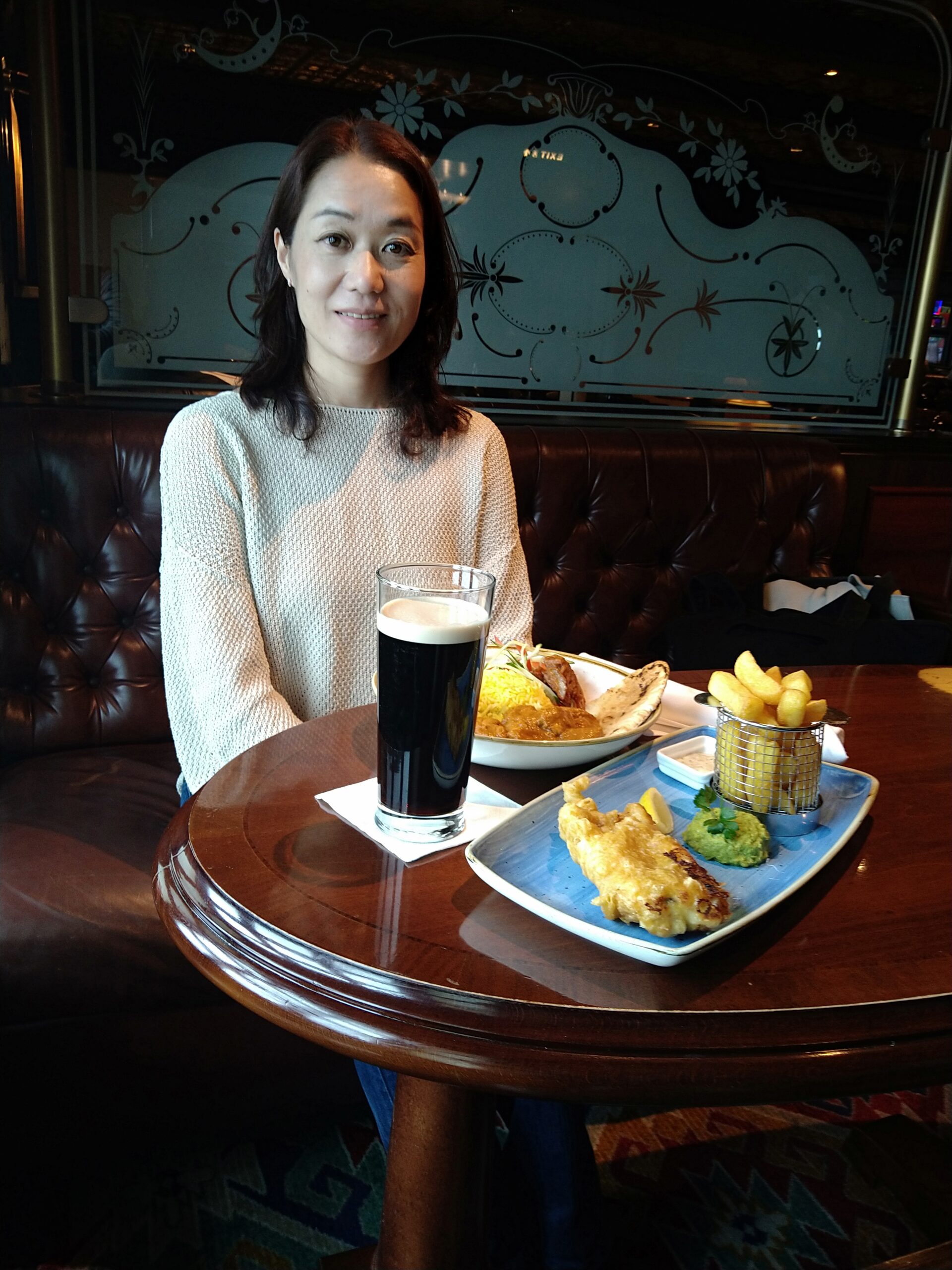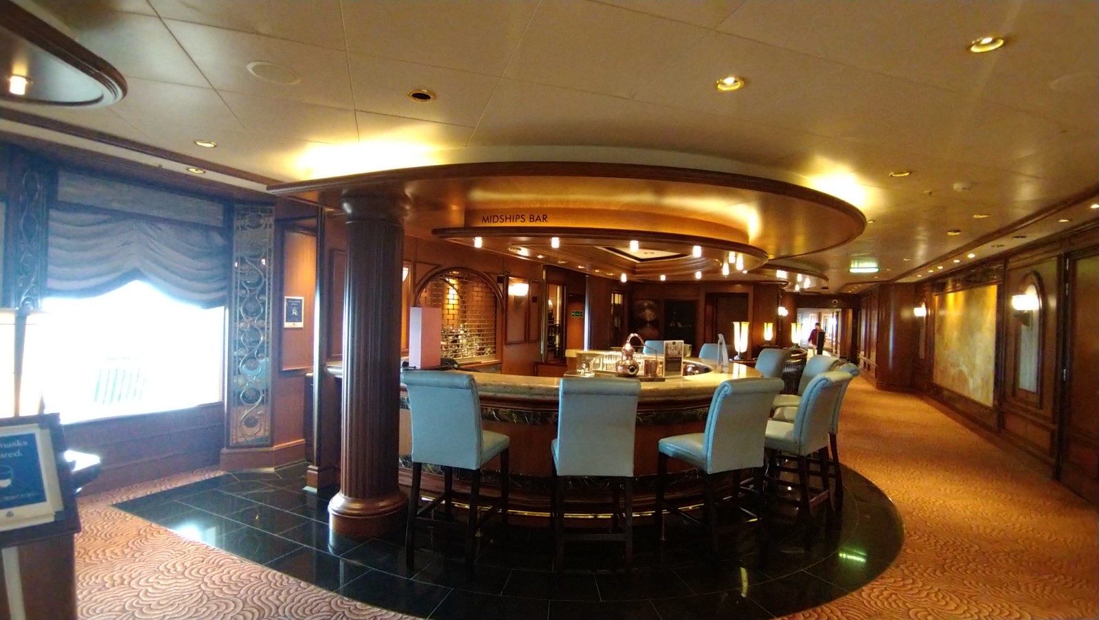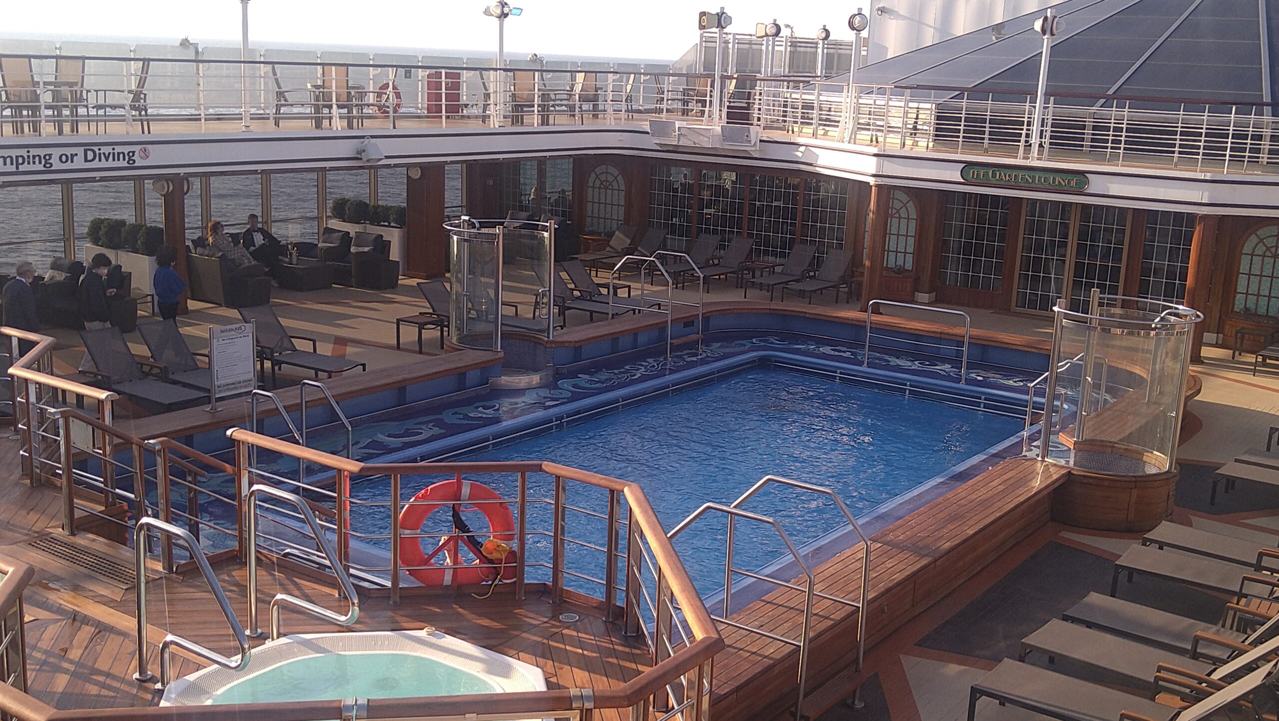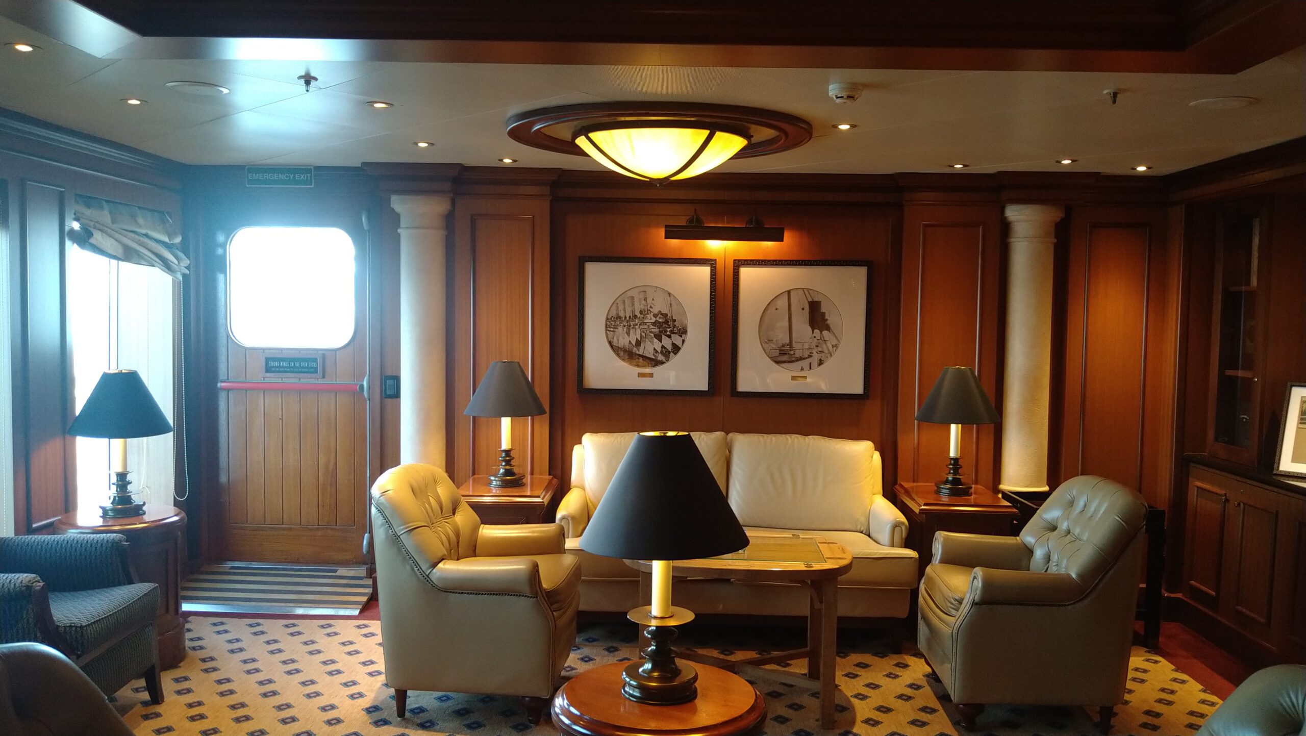 フィッシュ&チップスとギネスのランチ、シャンパン・アフタヌーンティー(Laurent Perrier Cuvee Rose)、ウェストエンドを思わせるミュージカル、カジノ、ハープやピアノの演奏、芸術史のレクチャー、ブリッジやバックギャモンのクラス、ライブラリー、シガーラウンジでの葉巻・・・・・・大西洋横断―つまり終日航海が何日も続く―を行っている船会社だけあり、乗客をあきさせないまさにほぼ分刻みのプログラムを実施している。