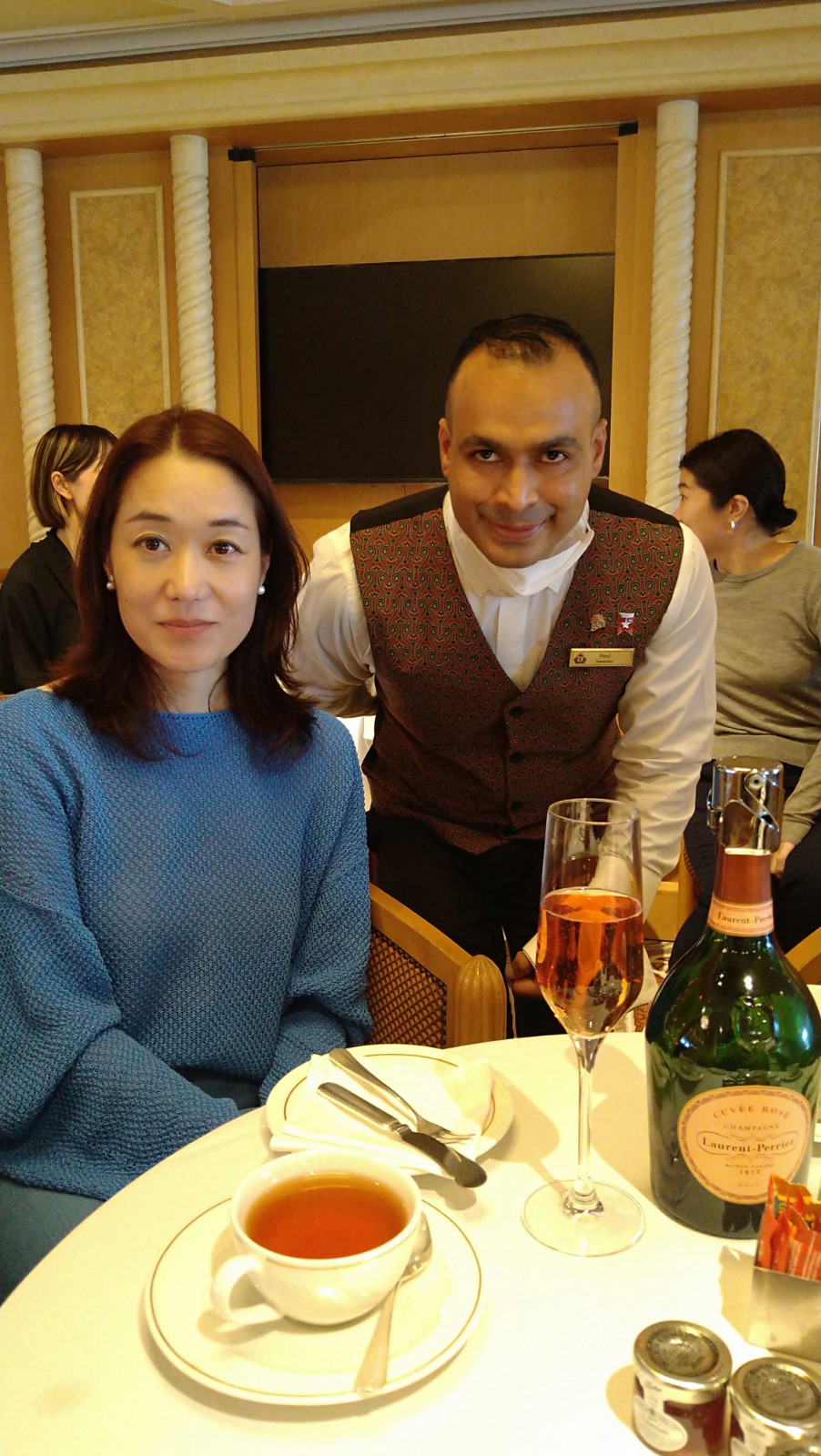 私があまりにワインに興味を示すので、ワインリスト1冊(2センチくらい)をくださった。それもチーフソムリエ手ずから、「そんなにワインがお好きなら、どうぞお持ち帰りください」と。それからブリタニアレストランのソムリエさん全員が集まり記念撮影も行えた。今、ワインリストを端から端までなめるように読んでいる。