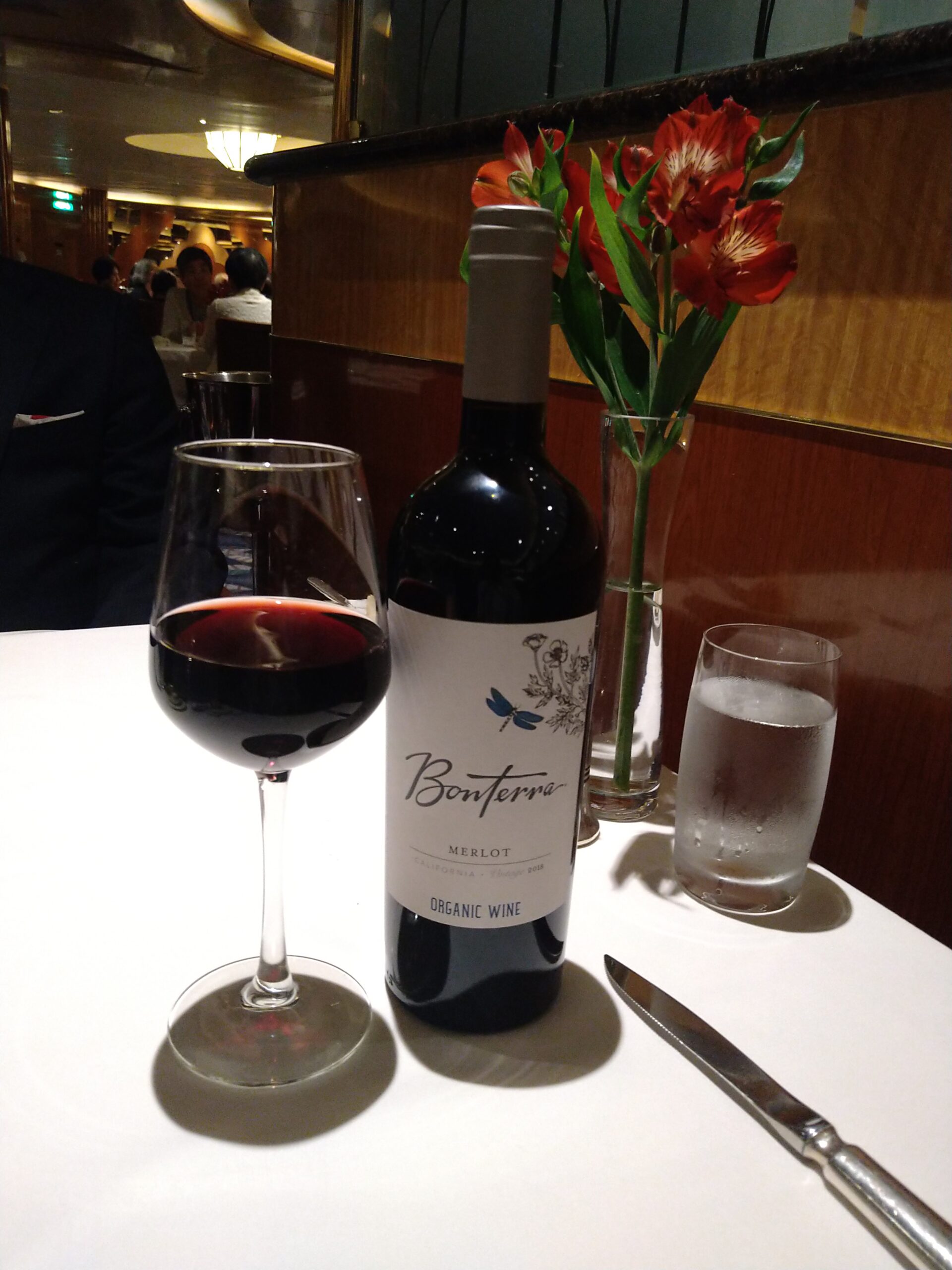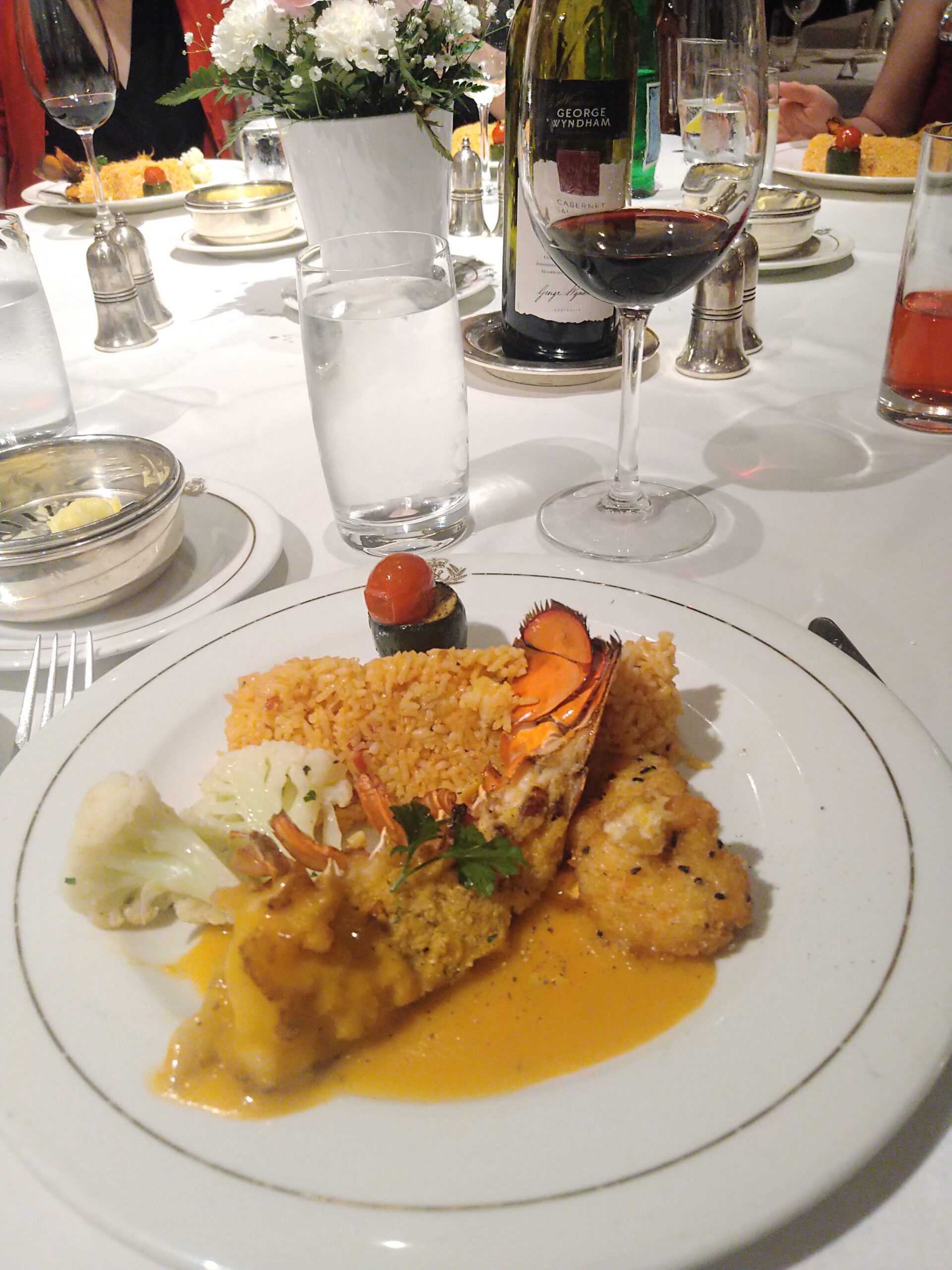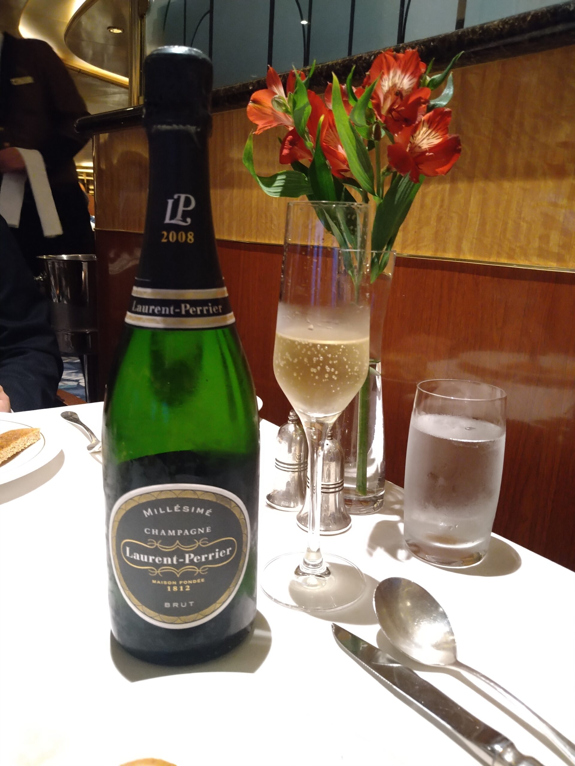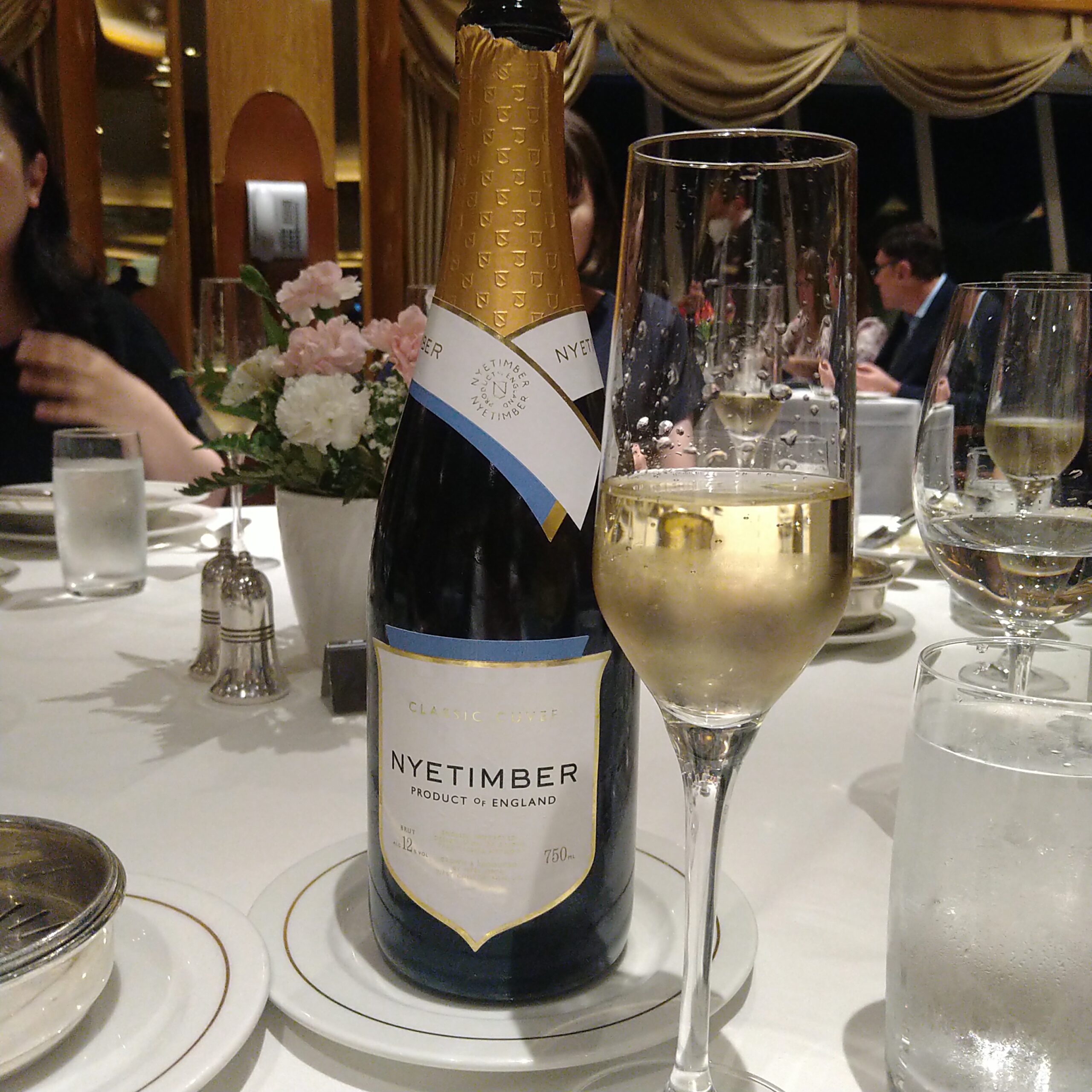 英国王室御用達のLaurent Perrierをはじめ、各国の選りすぐりのワインがオンリストされている。英国の船だけあり、英国のスパークリングワインとスティルワイン(珍しい!)も楽しめる。Nyetimber Classic Cuvee、Gasbourne Blanc de Blanc、Bacchus Chapel Down・・・・・・。