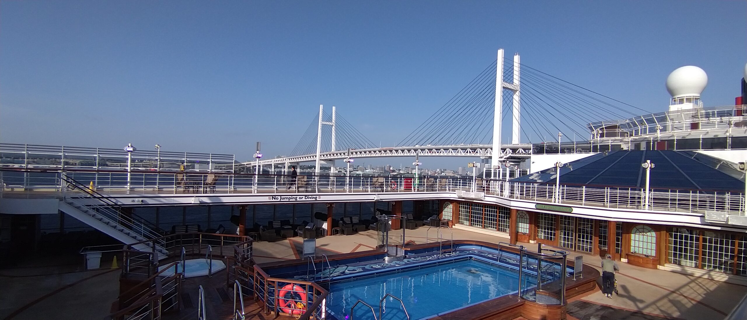クイーン・エリザベスは、全長294m、総トン数90900トン、乗客定員数は2081人、乗組員は980人という大型客船だ。7ページの記事に収めるには、船上での体験も含めて大きすぎる船である。今後も何度も乗船できるよう、この船の良さが伝わる良い記事を書こうと思う。
