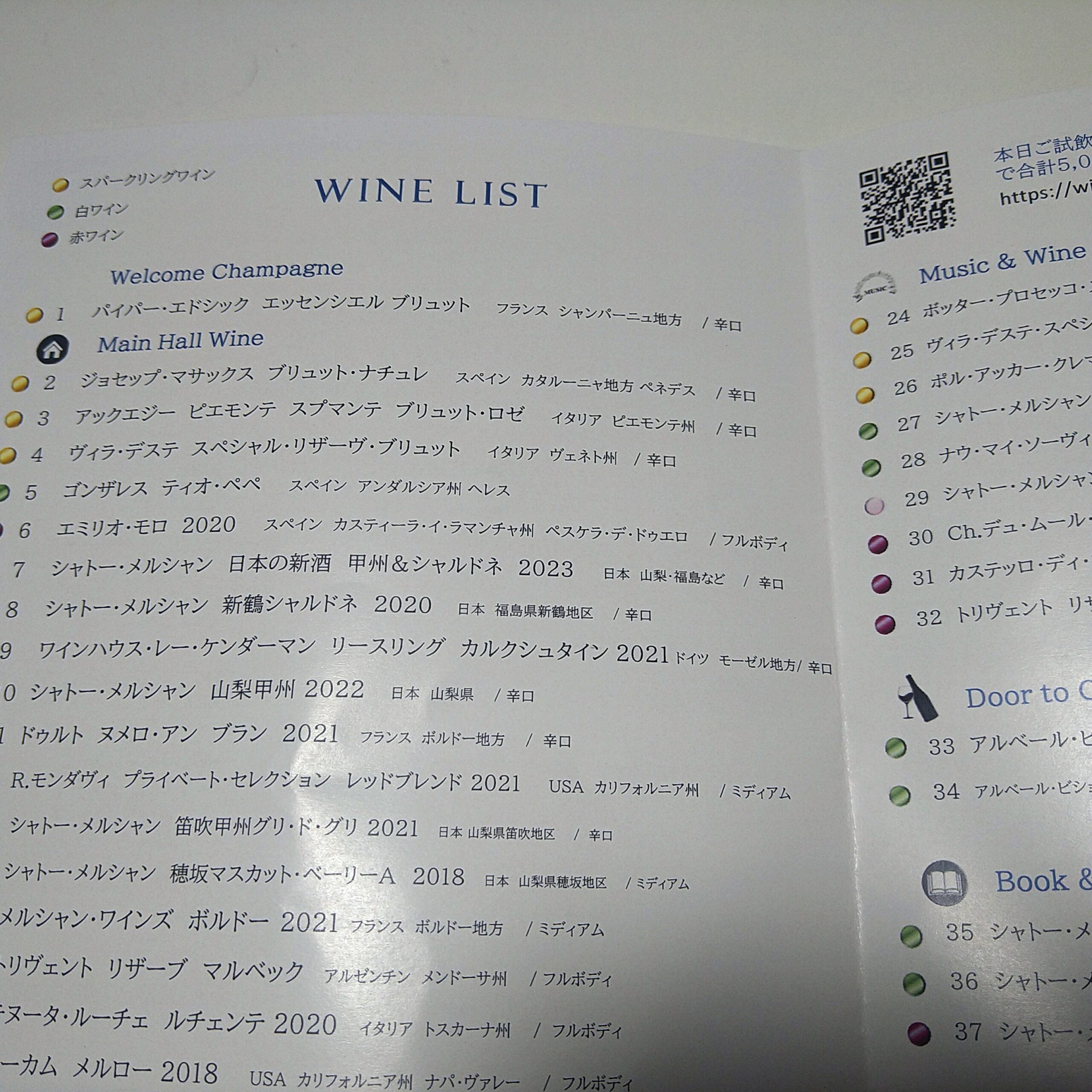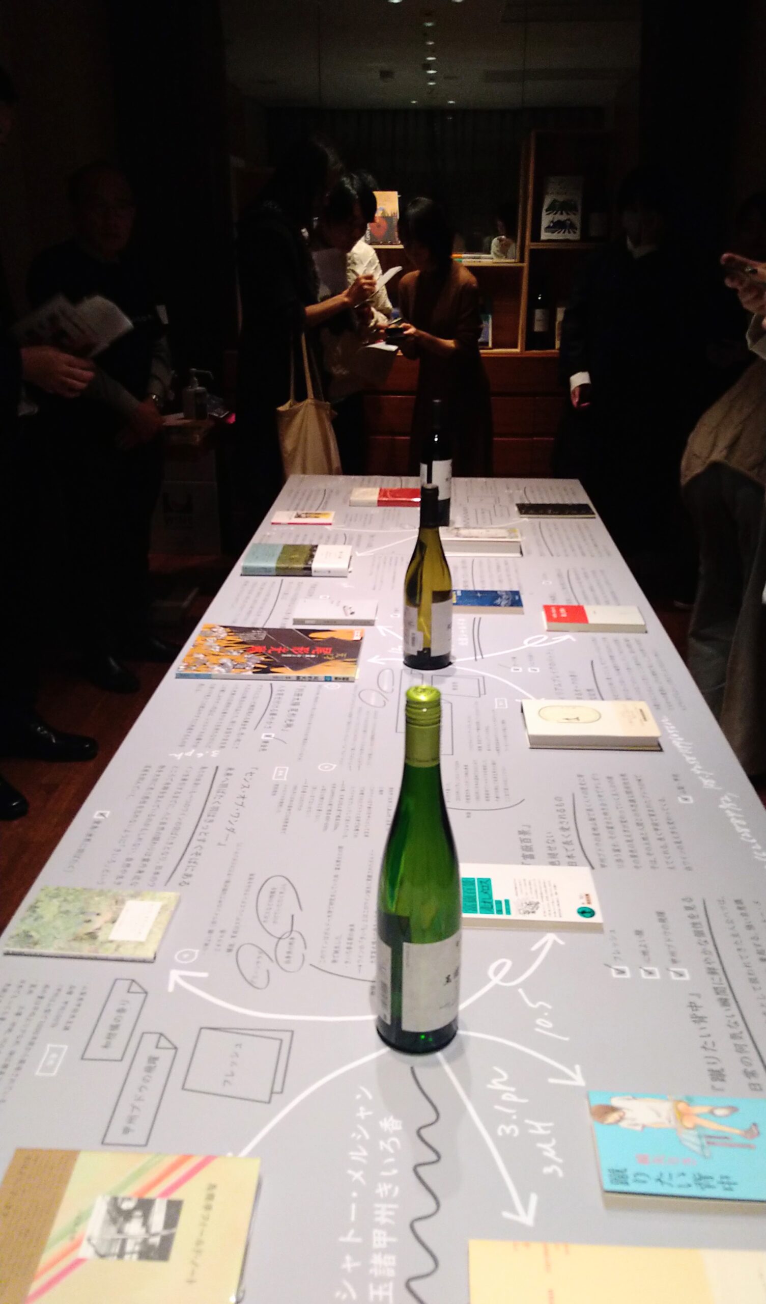 会場では39種類のワインと、 20 種類以上のフィンガーフードが用意されていました。吐器もあるため、数多くのワインを試飲できました。どのワインも美味しいのですが、もっとも心に残ったのは「笛吹甲州グリ・ド・グリ」です。「このワインに合わせて、どんな本をお選びになりますか」とも聞いてみたかったのですが、やはりご本人を目の前にすると緊張して頭から吹っ飛んでしまいました。ダメですね。