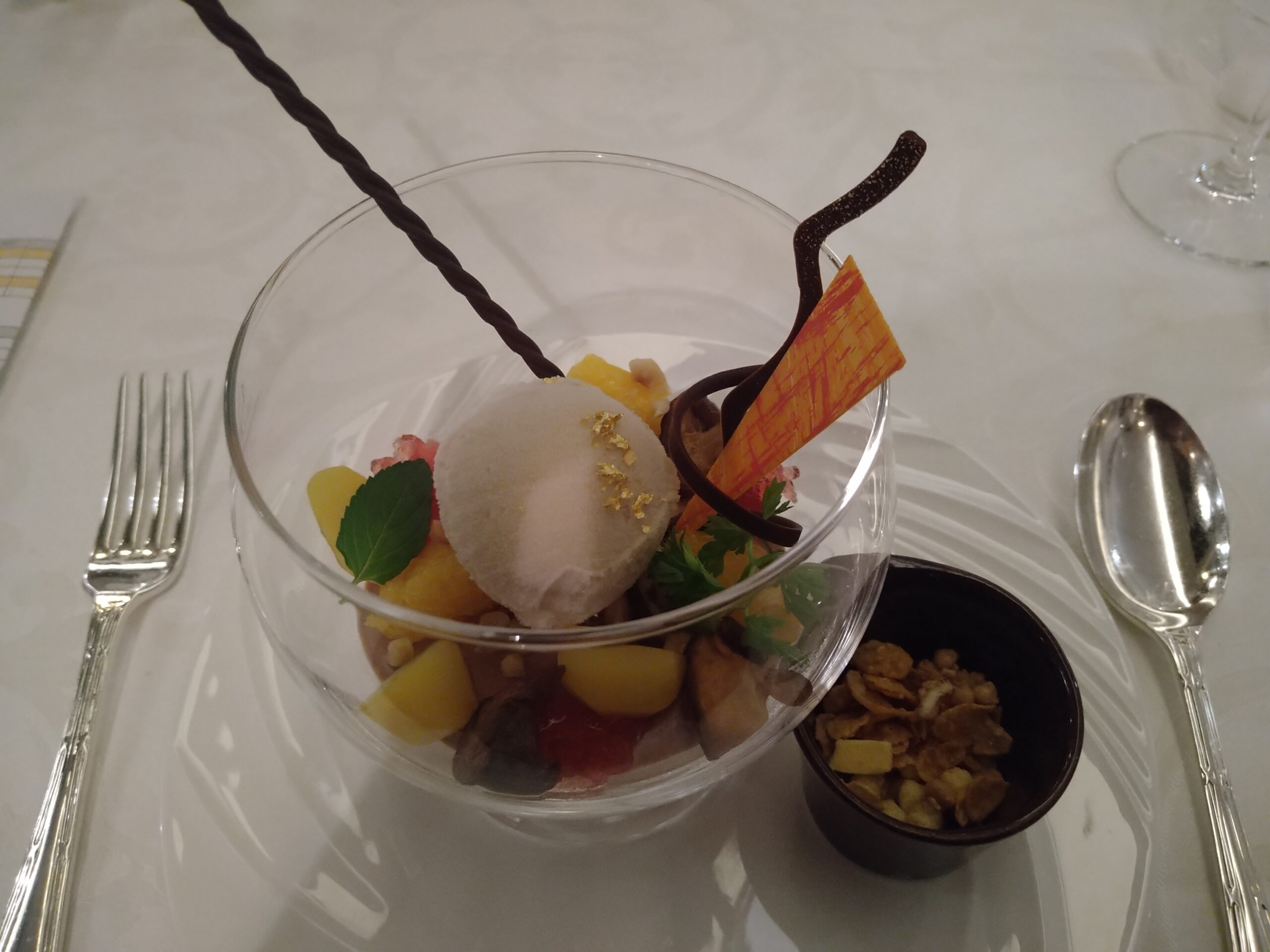 カクテル1dayフリーパスには、ノンアルコールカクテルも含まれている。ノンアルとアルコールカクテルを試す杯数と配分を最初に決めて厳守、おやつは取材で必要と思われる分だけ食べる。(そう言ってるはしから、もう食べたから食べなくてよい飛鳥Ⅱオリジナルもなかを2つも皿に盛ってしまった。月餅とチョコケーキと桃ゼリー生クリーム添えも。だっておいしいもんね)