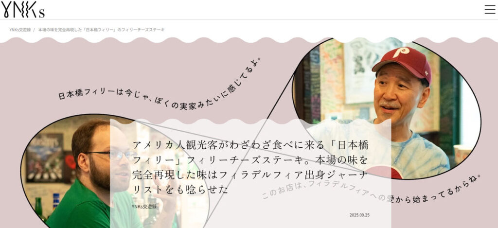 You Never Know/YNKs 交遊録 2025.09.25 アメリカ人観光客がわざわざ食べに来る「日本橋フィリー」フィリーチーズステーキ。本 場の味を完全再現した味はフィラデルフィア出身ジャーナリストをも唸らせた